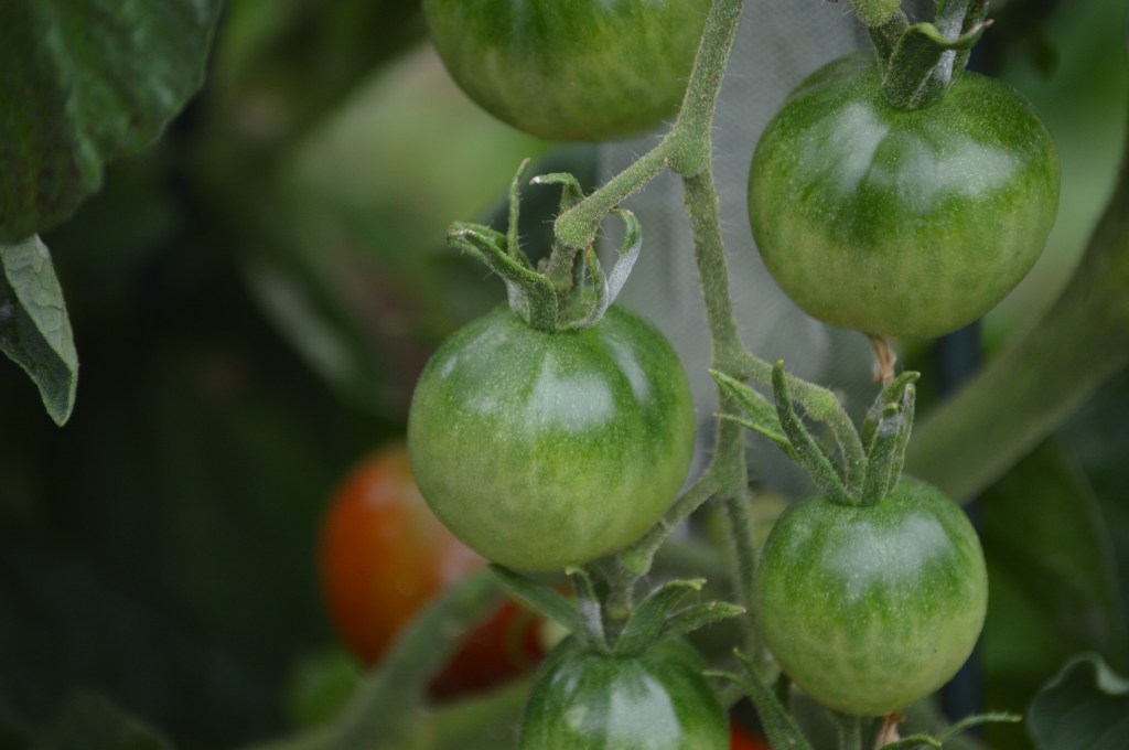 As I continue my methodical trudge between hose and garden, I notice my surroundings. The leaves on the plants are not just green. They display a variety of colors: greens, grays, blue-grays, reds and yellows. The tomatillo plant is actually a bright chartreuse. Every hue is splashed with sunlight or darkened in shade and shadow. And there are textures. Plants that at first glance present a jumble of growth, upon closer observation, reveal the structure and function of ordered lines and patterns in stalk and leaf, in blossom and fruit.
